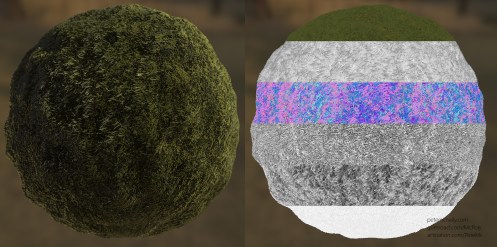 I tried some experiments over the Summer with procedural scattering in 3dsmax to create tiling textures, kind of like Substance Designer but in full 3D. This has pros and cons but I’m encouraged by these tests and will definitely use the technique again. The workflow is basically create a number of models, e.g. stones, pebbles or grass blades, scatter them across a noisy plane primitive using PFlow or Hair and Fur in 3DSMax, then run a maxscript to chop, repeat and tile them along the border creating a seamless high poly tile. From that, the usual textures can be rendered off, height, normals, AO etc and used to create materials. Here’s my attempt at some lawn grass using this technique, rendered in real-time: