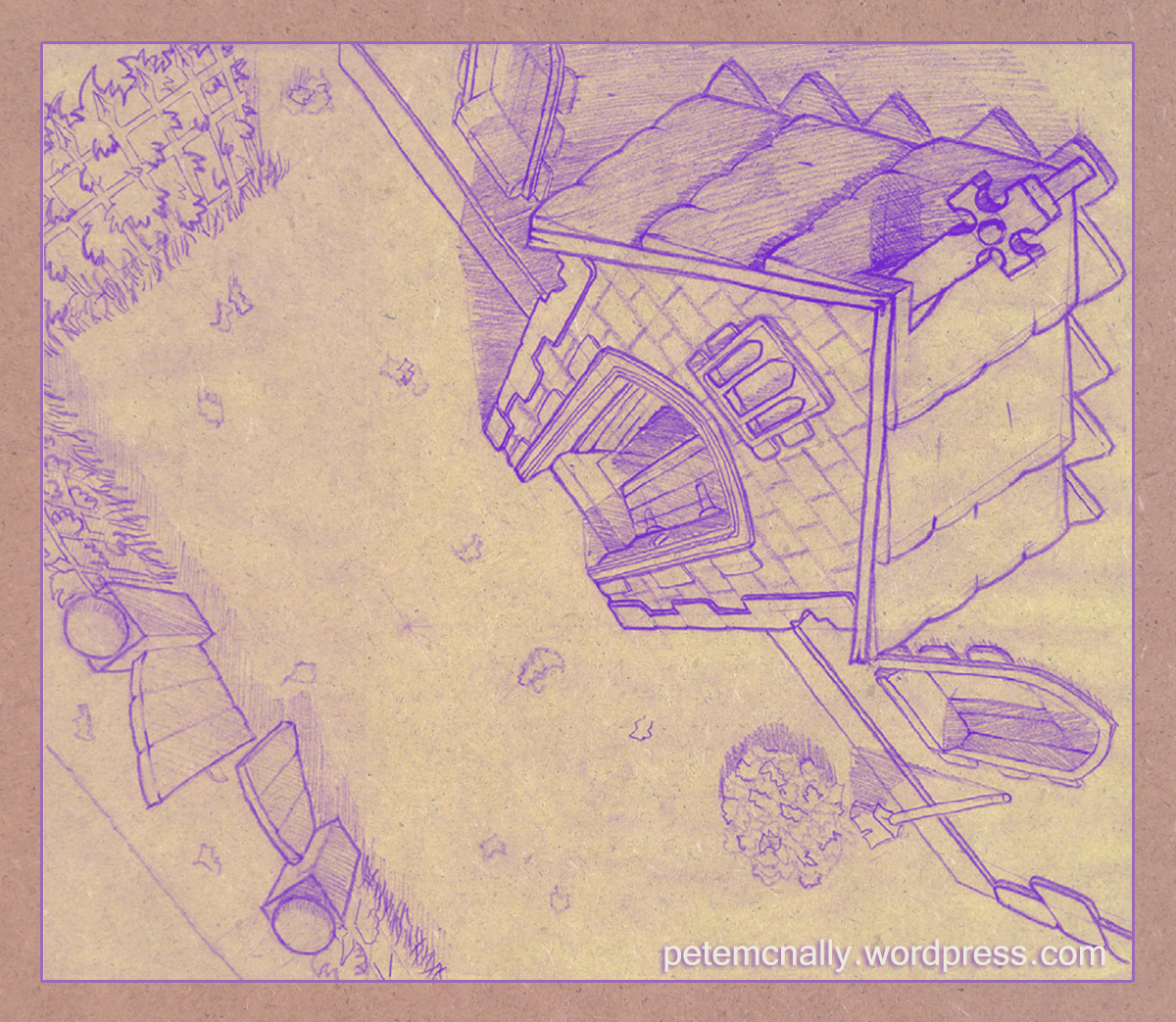 These were my first two layouts while studying Computer Animation and 3D Modelling at Ballyfermot College (now the ISA). The course leaned heavily on traditional principles of classical animation, so a large part of the coursework was drawing. I have been drawing since I could hold a crayon in my mouth but it was interesting to learn about best practice and professional techniques employed in major studios like Disney and Sullivan Bluth, who had a large studio in Dublin during the 80s and 90s. The layouts below are from separate college assignments and bear no relation to each other. The originals are pencil on animation paper, these have been treated for presentation.