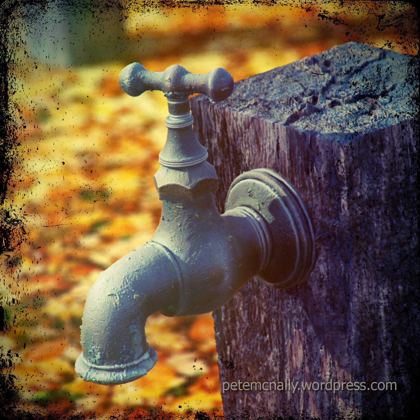 I used Surface Mapper in 3DSMax to render off a dust and cavity map for use in texturing, the body of which was done using photo sourced projection maps in Mudbox. I extracted the white areas of oxidisation on the metal to a new texture and applied it as a reflection mask and displacement map back in Max to break up the silhouette on the tap model. I also did some full scene passes – ambient occlusion, zdepth, Fresnel falloff on the tap and a gradient to be composited in Photoshop. The raw pass was rendered to EXR format so that there would be room to play with exposure afterwards, I was hoping to achieve several Instagram style effects at the end. Lighting is a simple daylight system (MR sun and physical sky) with some foliage added off camera for light breaks and shadows.