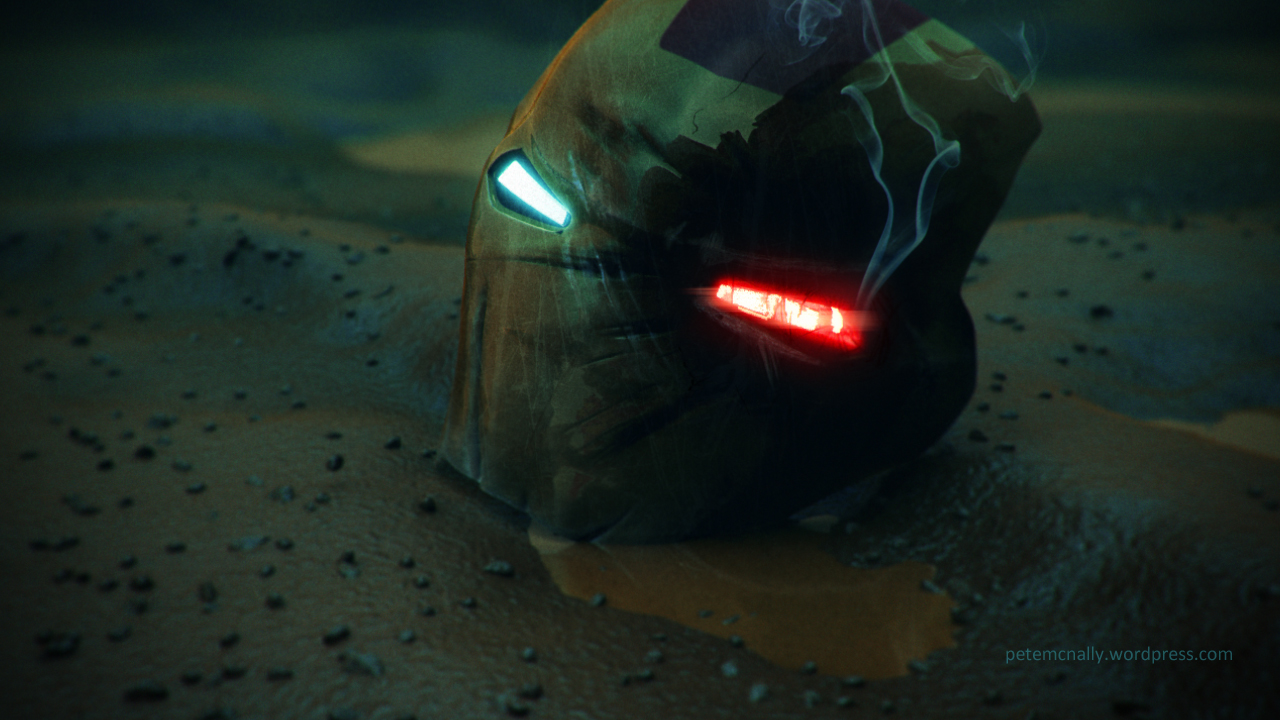 A piece of Tony Stark’s helmet modelled for “Iron Man week” on the Irish Sketch Society. Looks like curtains for this particular suit model…