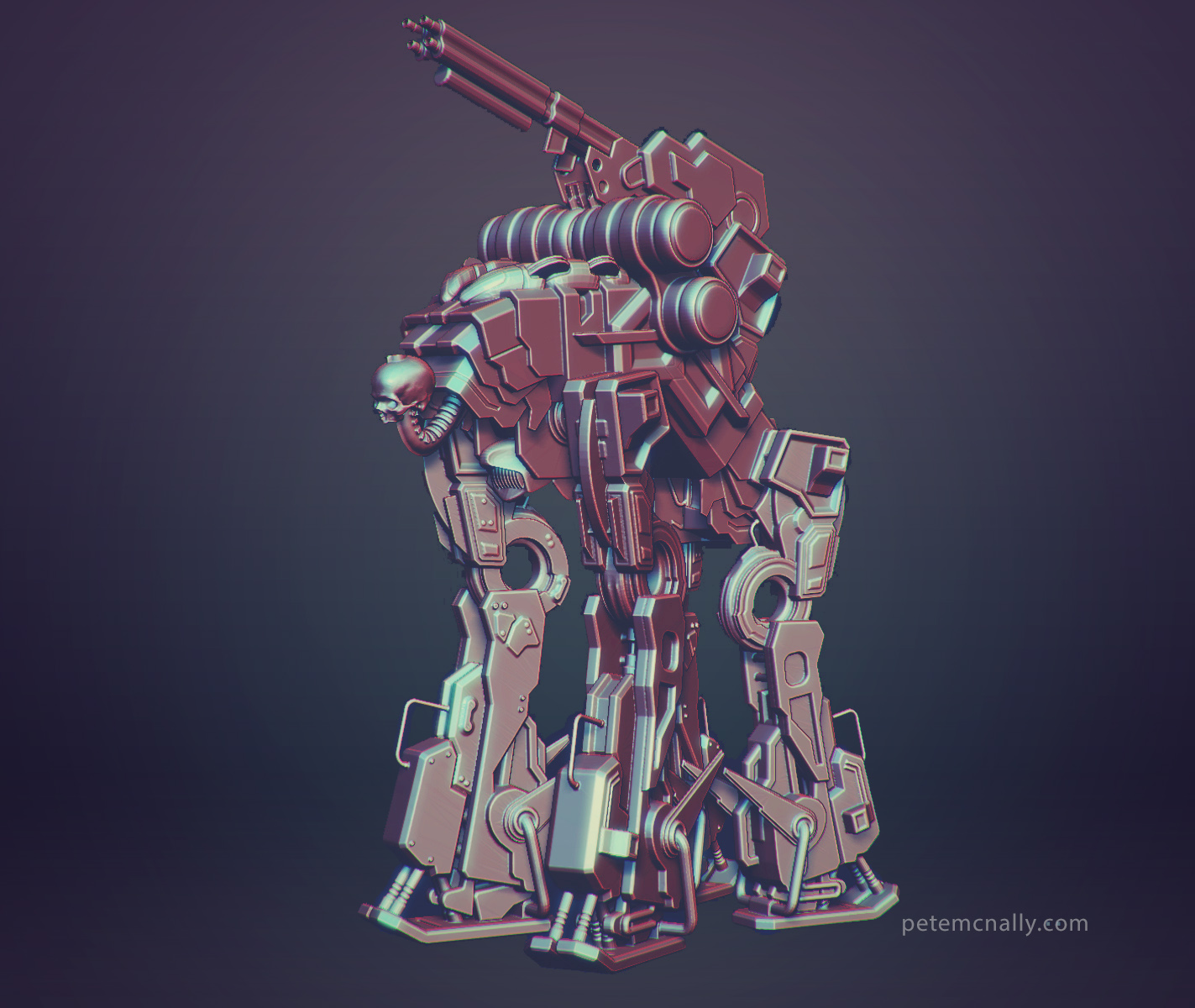 I’ve also been doing some more 3D printing, further testing what I can get away with on the Ultimaker in terms of structure and resolution. Here, I kitbashed a quadrupedal mech from a robotic leg I was working on before, it turned out OK considering how brutal the booleans were (thanks Zbrush!).