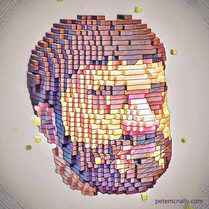 I recently attended a workshop where the subject of stylised photogrammetry arose, in other words, 3D scanning stuff for purposes other than photo realism. Would it even be practical to scan objects for a stylised project when realism wasn’t the end goal? I’ve done some experiments on this before (I blogged about it here). I’ve recently blogged about scanning a human head and I thought I’d try a non-photorealistic application for it, by voxelising the scan and rendering it with SSS materials in V-Ray. I then took it into Prisma on my phone and ran some filters on it, see below!