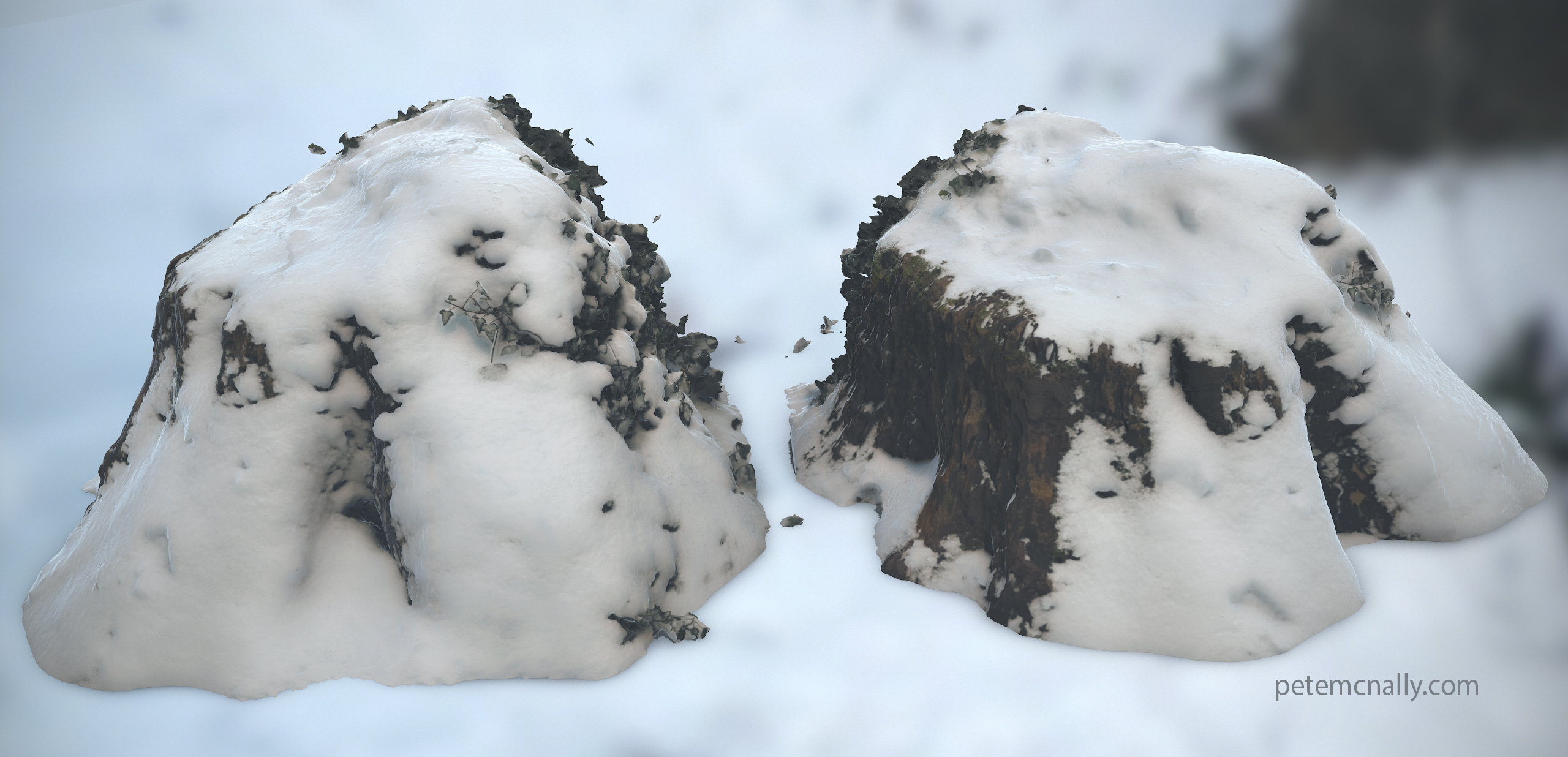 PS: Unrelated, but I couldn’t let this frozen weather pass without trying a bit of photogrammetry 😀 Quickly rendered in Toolbag 3 with some SSS for the snow.