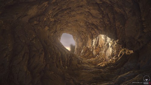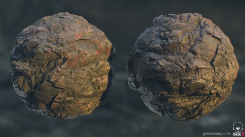 Quick post – some time ago I made a post on here about making a simple cave in 3DSMax in an hour over lunch. This evening I did something similar! I’ve been playing with Artomatix, as per my last post and I was pleased with the results of an experiment tonight and thought I’d post the results here. I had a partial scan that hadn’t resolved well it was wet rock on a very sunny day so large areas of detail were missed or were blurry. I baked out what I had in 3DSMAX, diffuse, normals, AO, height and a shadow map used to help with manual de-lighting in Photoshop. I ran these textures through Artomatix for seam removal and it tiled them quite nicely. After some tweaking, I applied the material to a sphere in Toolbag 3 and tested out some lighting environments, before applying the same material to the inside of a curved cylinder and tiling appropriately, to make the cavernous environment you see below. Not bad for a single material!